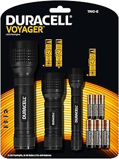 Duracell Taschenlampe, Voyager EASY Serie Taschenlampen, 20, 40 und 60 Lumen, LED-Lichter, schwarzes Kunststoff-Finish, Duracell Batterien enthalten (3 Stück) (TRIO-E)