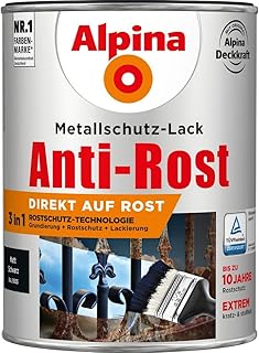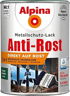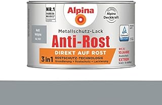 Alpina Anti-Rost Metallschutz-Lack vereint eine ausgezeichnet haftende Grundierung, wirkungsvollen Langzeit-Korrosionsschutz und eine dickschichtige Lackierung. Einfach direkt auf den Rost streichen: Das stoppt Rostfraß* sofort! Die hohe Absperrwirkung hält verlässlich Feuchtigkeit ab, damit erst gar kein neuer Rost entsteht. Die 3in1 Rostschutz-Technologie (Grundierung + Rostschutz + Lackierung) der Alpina Metallschutz-Lacke vereint eine ausgezeichnet haftende Grundierung mit einem wirkungsvollen Langzeit-Korrosionsschutz und einer dickschichtigen Lackierung. Dadurch und durch die Anwendung direkt auf Rost verringert sich der Zeitaufwand gegenüber herkömmlichen Lacken deutlich.