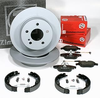 Autoparts-Online Set 60015806 Zimmermann Bremsscheiben unbelüftet Coat Z Bremsen Bremsbeläge Warnkabel Handbremse Zubehör für hinten die Hinterachse