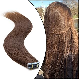 45cm Tape in Extensions Echthaar #4 mittel braun Remy Human Hair Haarverlängerung Haarverdichtung glatt 50g 20 stück X 4cm