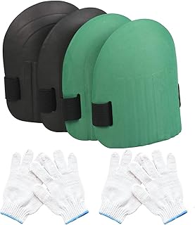 DKINY Knieschoner 2pcs aus wasserdichter Eva, bequem Knieschutz Knieschützer für Gartenarbeit mit 2 Paar Nylonhandschuhe, Gartenknieschützer Kniepolster leicht weich Schwarz und Grün für Gartenarbeit