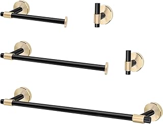 Ralbay 5-teiliges Badzubehör-Set aus 304 Edelstahl, Handtuchhalter-Set, rund, zur Wandmontage (schwarz und goldfarben)