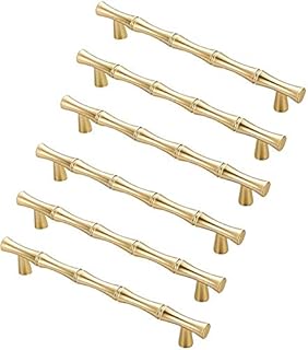 Möbelgriffe aus Zinklegierung, Griffe für Küche, Schrank, Bambus-Optik, 6 Stück Lochabstand: 128 mm, goldfarben