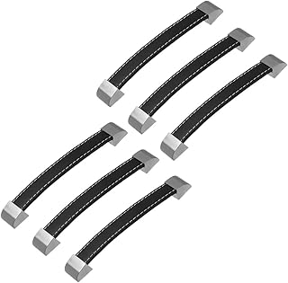 Creatwls 6 Stück Türgriffe aus PU-Leder für Schrank Schubladengriffe, Schwarz Möbelgriffe aus Leder im Modernen Stil Türgriff Küche Möbelgriffe Kleiderschrank Zieht Griffe, Lochabstand 160 mm