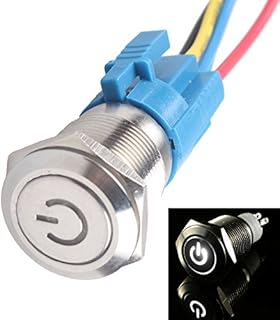 HALJIA 16mm 12V AC Selbsthaltender Schalter Metall LED Blau Ring Beleuchtet Drucktaster Druckschalter Druckknopf Ein-Ausschalter für Auto Industrie DIY Schalter