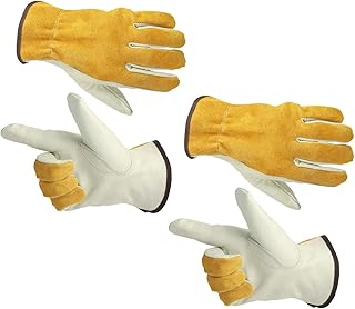 Uluck Plus 2 Paar flexible dornsichere Gartenhandschuhe, robuste Rigger-Handschuhe, bequeme Leder-Arbeitshandschuhe für Garten, Hof, Schweißen, für Damen und Herren