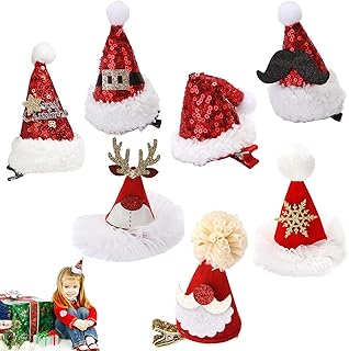 Mini Weihnachtsmütze Haarspange Nikolausmütze Haarklammern Glitter Haarspangen für Mädchen Weihnachten Hut Haar-Accessoires Haarspange für Weihnachten für Kinder Mädchen Frauen, 7 Stück