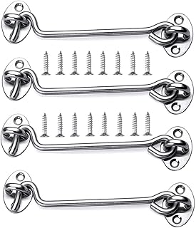 Kabine Haken, JESSTOLO 4 Stück Edelstahl Sturmhaken mit Schrauben Helter Locking Türschloss Türriegel für Schiebetürfenster Scheunentor Türen Garagentor Hangartor Fenster(Silber, 4'')
